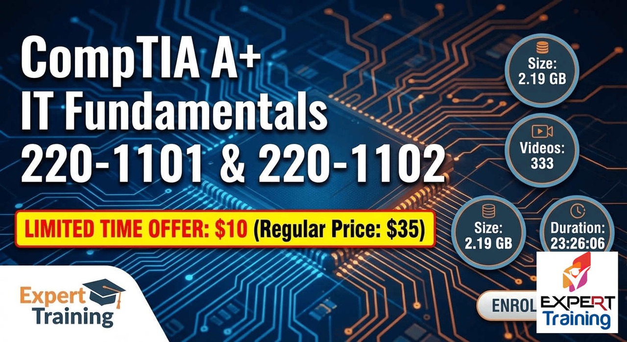 Start your IT career with CompTIA A Plus training covering IT fundamentals certification course topics including hardware, networking, and troubleshooting.